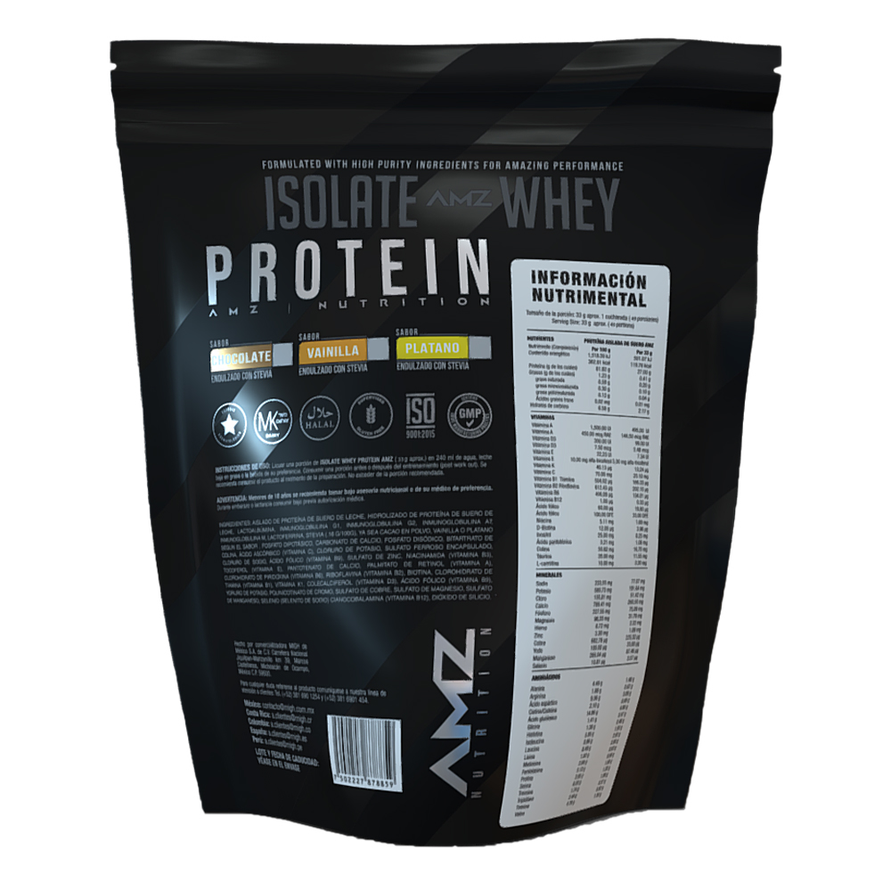 Proteína 27g – BCAA´s 5g – Azúcares 0g – Inositol 8.2g – Taurina 11.5 mg