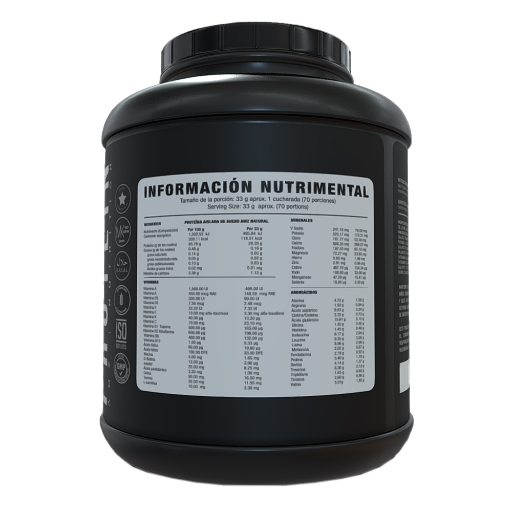 Proteína 28.3g – BCAA´s 5g – Azúcares 0g – Inositol 8.2g – Taurina 11.5 mg